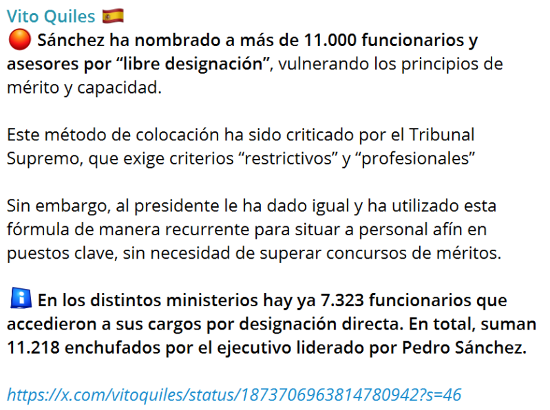 Fuentes del Partido Popular y PSOE señalan la 'corrupción' en VOX por el trasvase de fondos, señalando como 'empresa interpuesta de VOX' el CIF desde donde se cobró dichos fondos: “Si cobrar 60.000€ al año como influencer por compartir fotos de su propio marido en Instagram está bien, ¿por qué llevan 6 años ocultándolo?