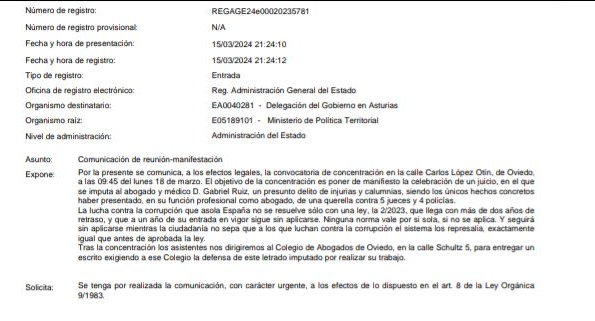 Según ACODAP, esa providencia de fecha 21 de noviembre de 2022 no se firmó por ninguno de los tres magistrados porque se sabía que la ley 2/2023, que entraría en vigor semanas después, derogaba los delitos a los que se refería la condena, las calumnias y las denuncias falsas.